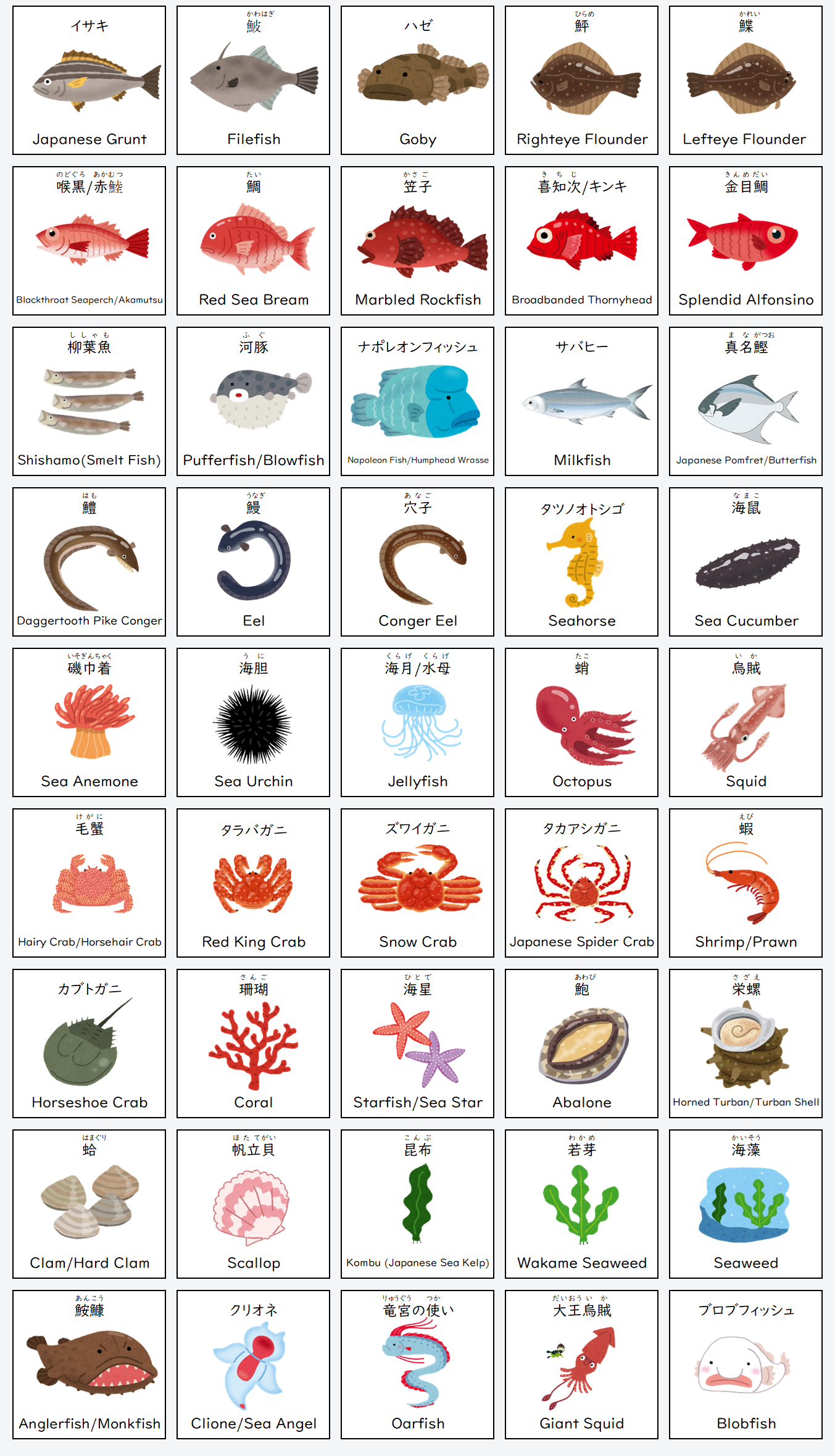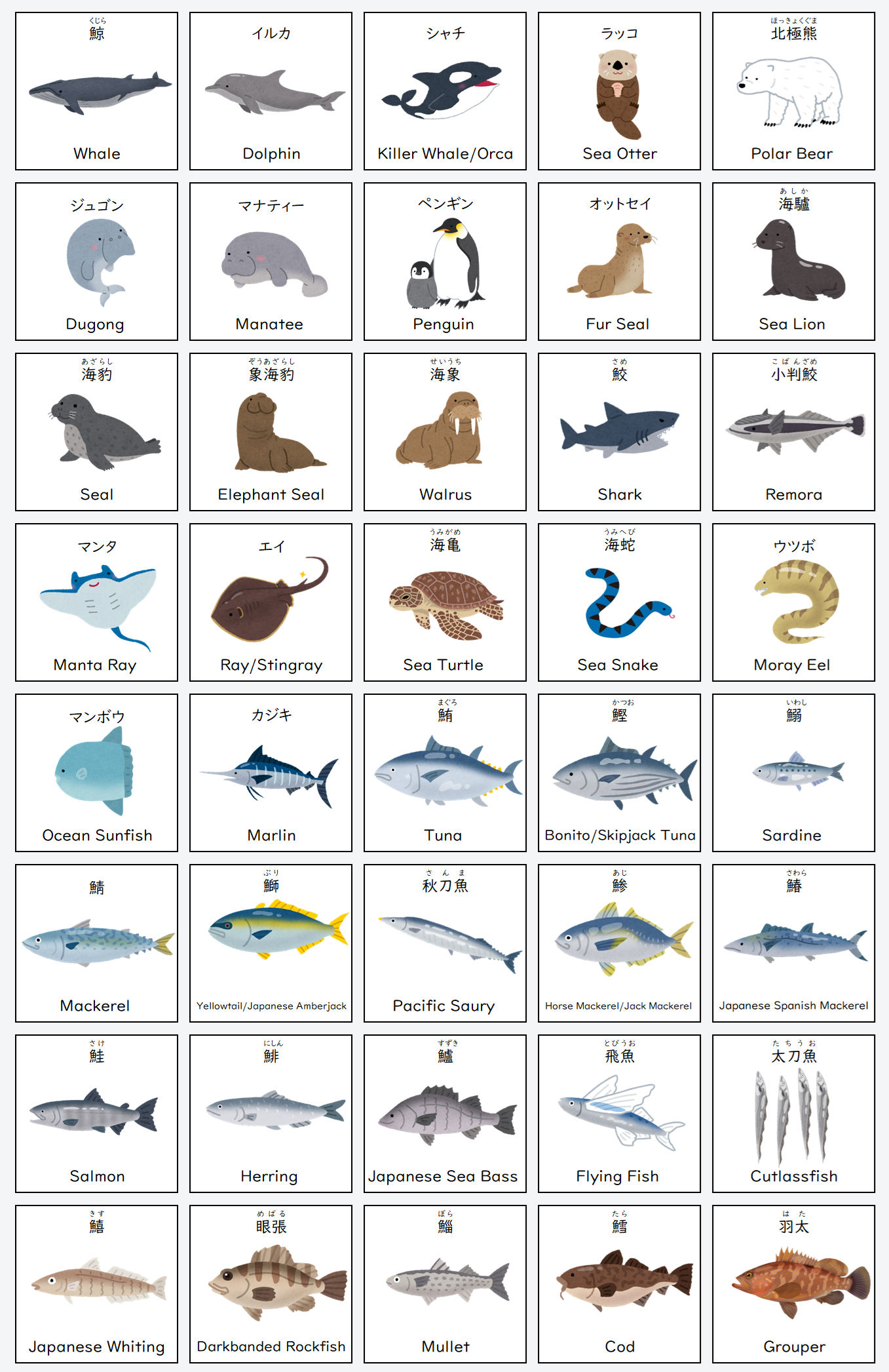 Essential Japanese Vocabulary: Sea Creatures (海の生き物の名前)