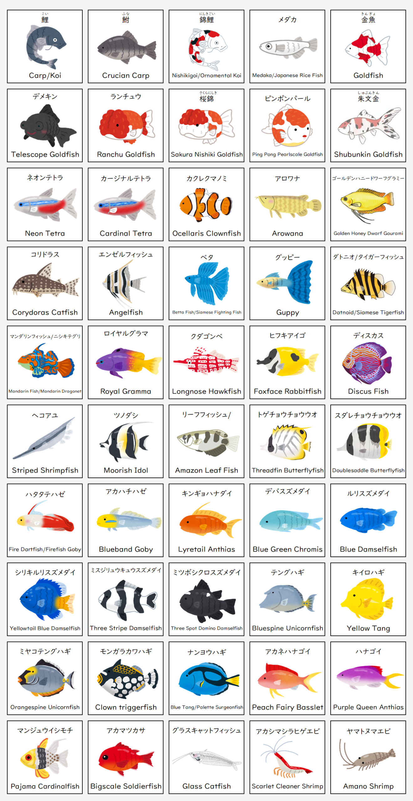 Essential Japanese Vocabulary: Aquarium Fish Names (観賞魚の名前)
