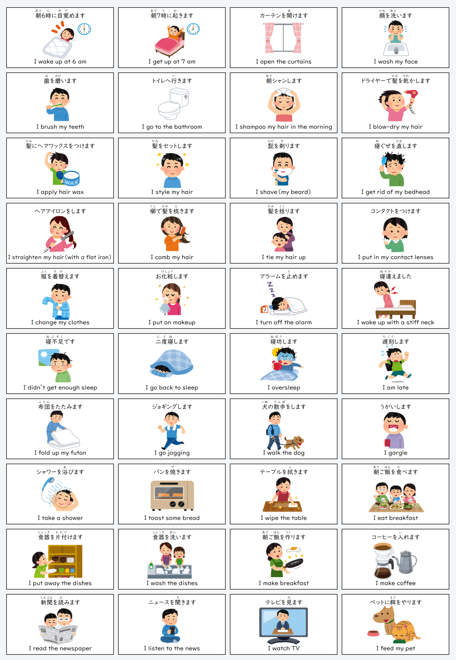 寝ぐせを直します。 | I get rid of my bedhead. |