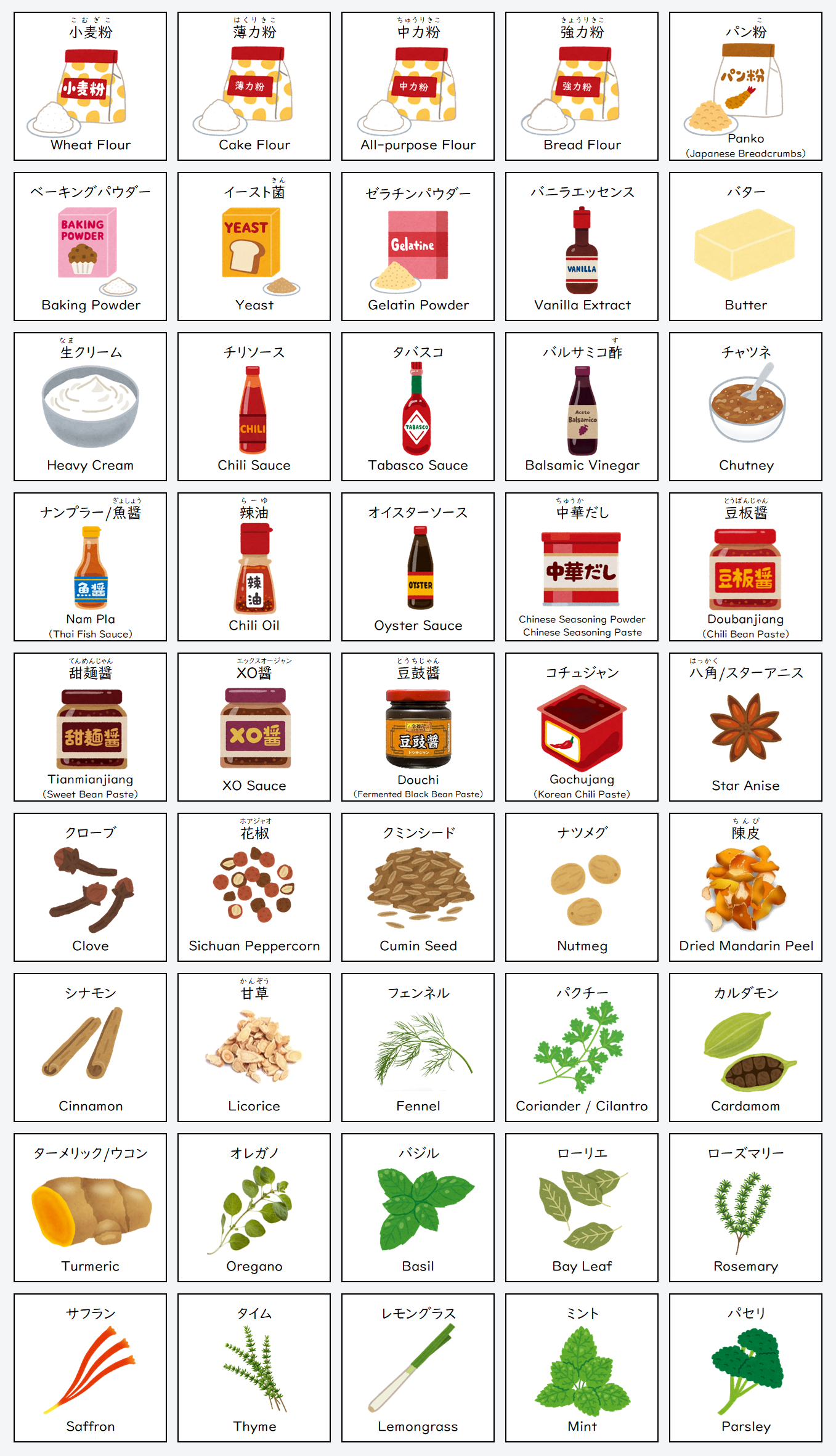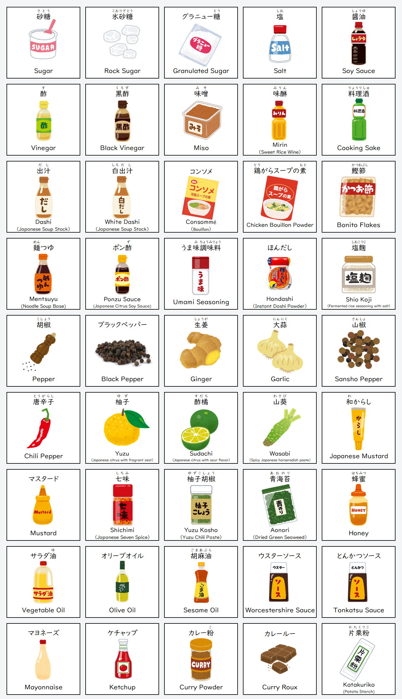 Learn Japanese Cooking Seasonings Vocabulary (調味料の日本語名称)