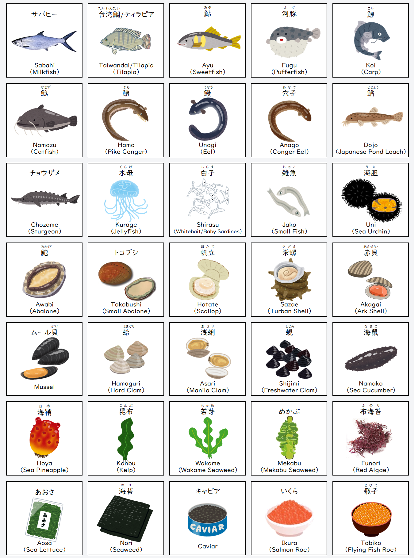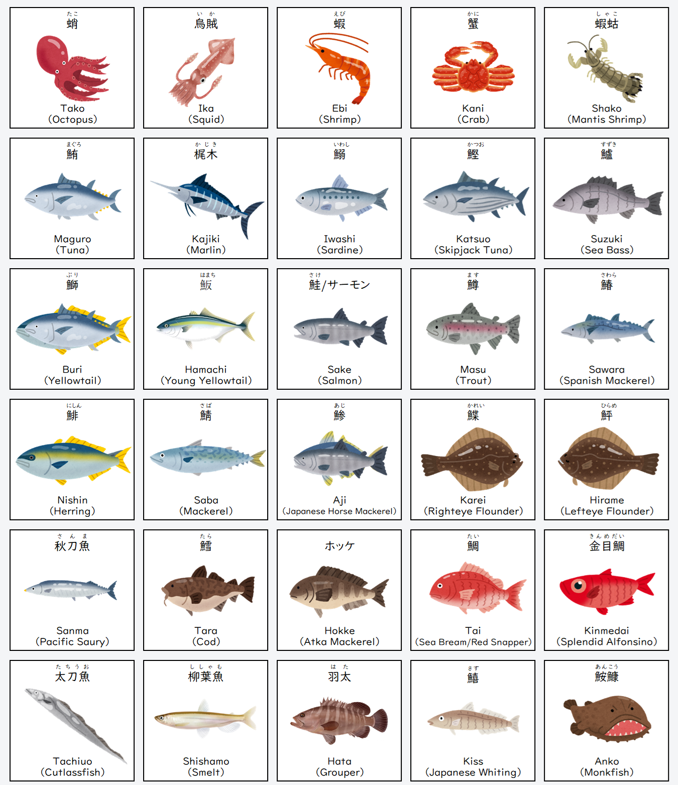 | 鯛 | Tai (Sea Bream/Red Snapper) |